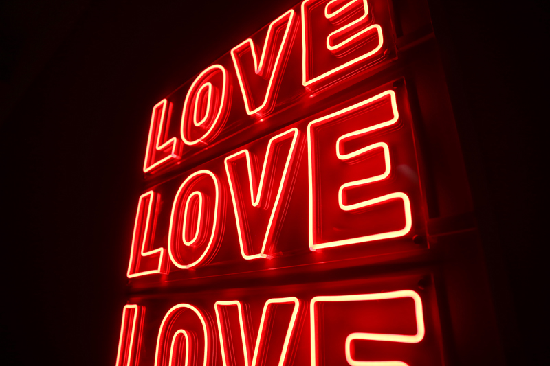 “独白”再现了翠西?艾敏的《承诺爱你》(I Promise to LoveYou),这组作品为纽约时代广场的“午夜时分”展览特别制作,霓虹灯拼写出发光的爱,成为艺术家手写的自白书。