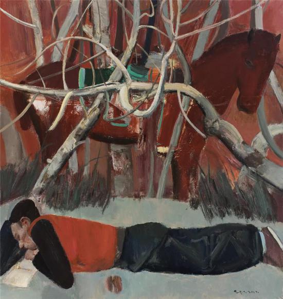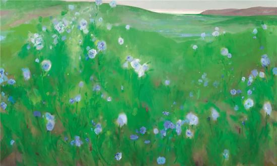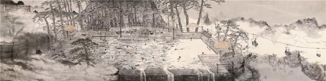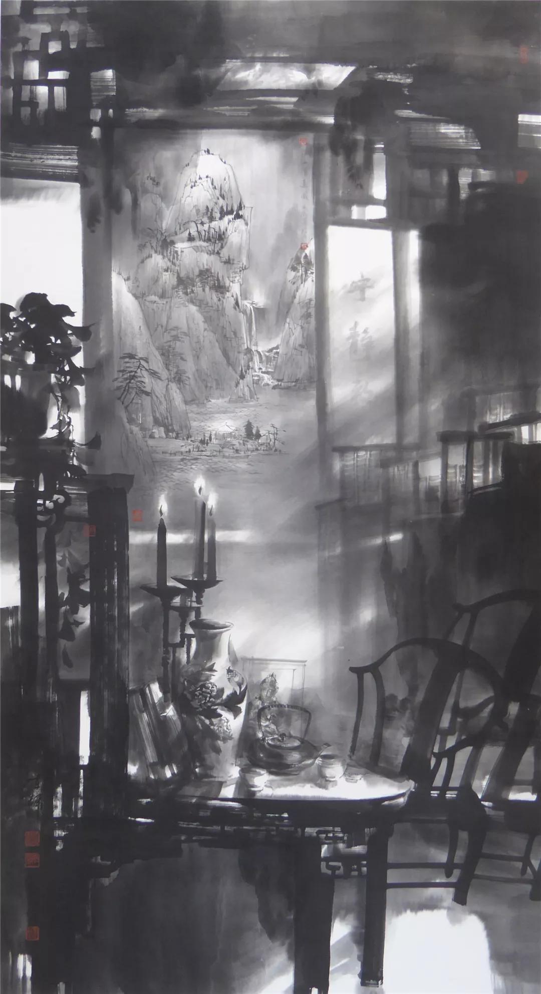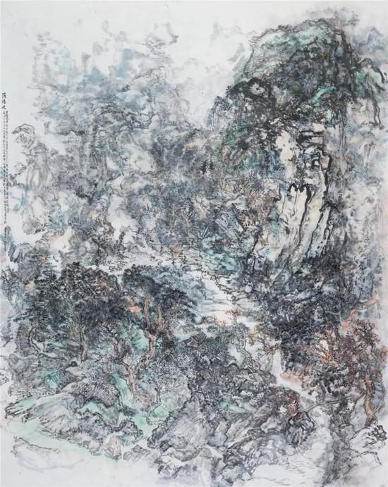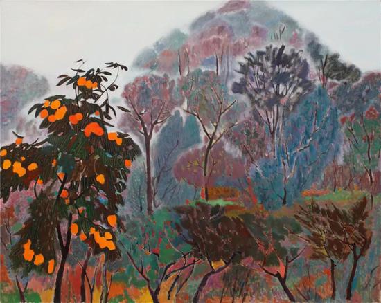 “诗心烂漫”展出了杜大恺、沈行工、钟蜀珩、李照东、马书林、王克举、李伟铭、杜华、胡伟、周京新、陈辉、何加林、方向、田莉、曾健勇、陈流、刘商英、彭斯、焦洋、任哲的作品。诗画一体是中国传统绘画的特点之一,中国古代画论较多论述了诗的语言性与画的视觉性之间的关系,如苏东坡评王维:“味摩诘之诗,诗中有画,观摩诘之画,画中有诗”,郭熙说:“诗是无形画,画是有形诗”,欧阳修在《盘车图诗》中说:“古画画意不画形,梅诗咏物无遁形。忘形得意知者寡,不若见诗如见画。”从中我们可看出诗画融合是中国绘画的独到之处,而诗与画在内在精神上所取得的共鸣,更多体现在艺术家对自然万物的感知和表现之中。这一版块选择了诗意充盈的作品,题材以山水风景、花鸟静物为主。董其昌说:“诗以山川为境,山川亦以诗为境。”在现代画史中,山水画又被释读为精神的风景、人文的风景、历史的风景、理想化的风景,中国的绘画精神里面所体现的人文精神之根本和精华,正是体现在于这种“天人合一”的文化观之中,其感受超乎于“可视”之上,具体的生命里包含着混沌的大宇宙,不管是对具象之物的概括和冶炼,还是演绎和想象,都关乎一种诗意的表达。