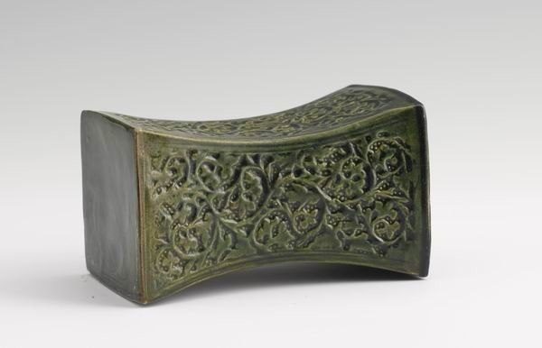 宋 绿釉印花花卉纹枕