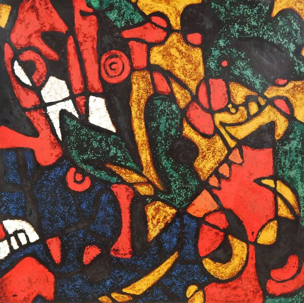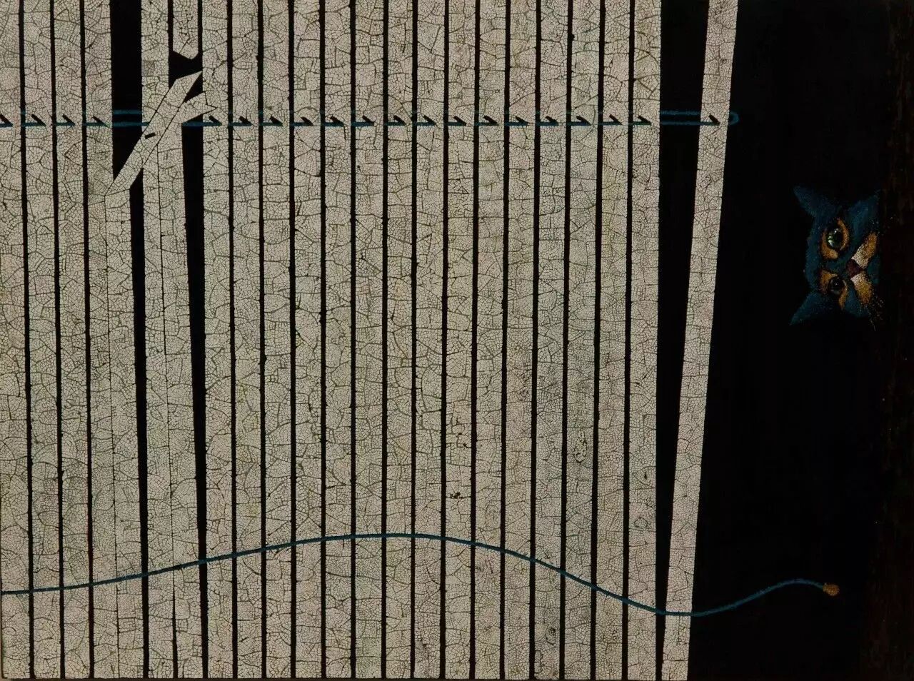 作品材质:生漆、夏布、瓦灰、蛋壳、矿物色漆